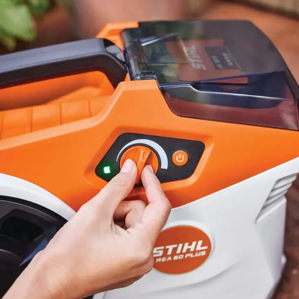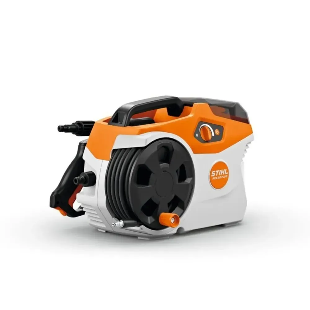 STIHL REA 60.0 PLUS — компактна акумуляторна мийка системи AK для середніх і великих садів. Вона не залежить від мережі живлення і водопроводу: підключіть акумулятор AK System, з’єднайте шланг або всмоктувальний рукав від ємності з водою — і мийку готова до роботи будь-де: у саду, на фермі, на кемпінгу, на велосипедній трасі. Тихий та ефективний EC-мотор у поєднанні з алюмінієвою помпою забезпечує тиск 100 бар при витраті 240 л/год. Безступінчасте регулювання тиску на корпусі дозволяє точно налаштувати режим очищення під будь-яку поверхню — від лакованого авто до садової плитки.
